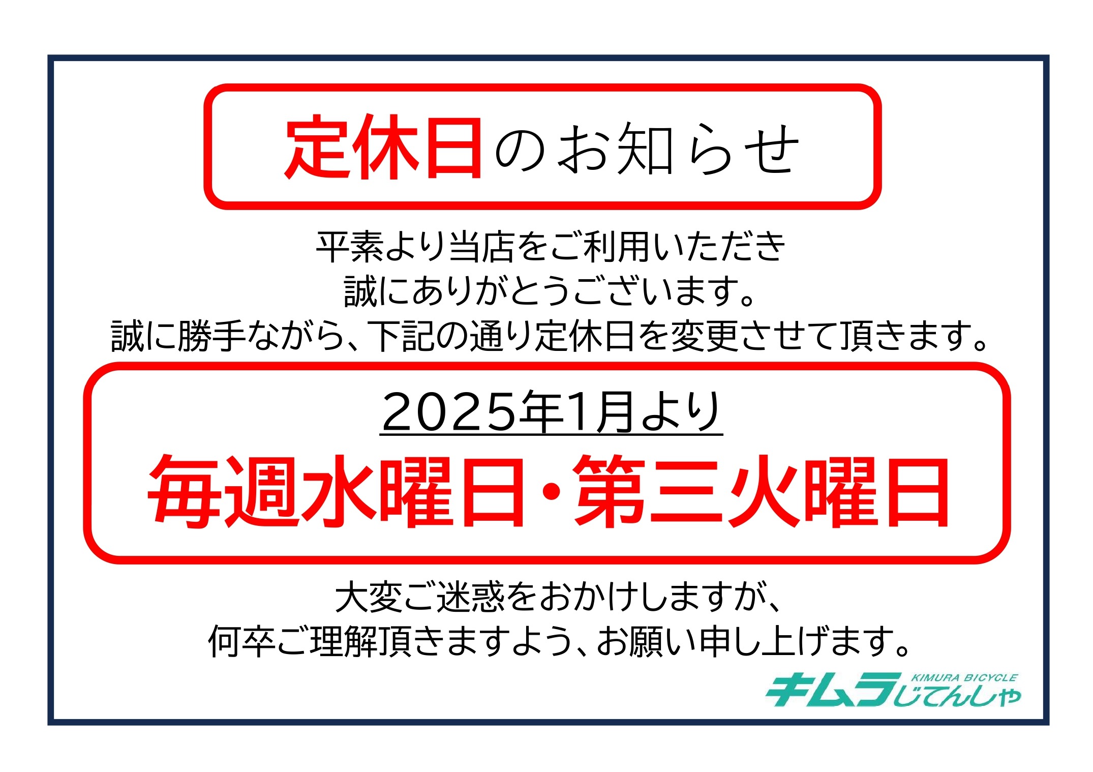 本年もキムラじてんしゃをよろしくお願いします☃