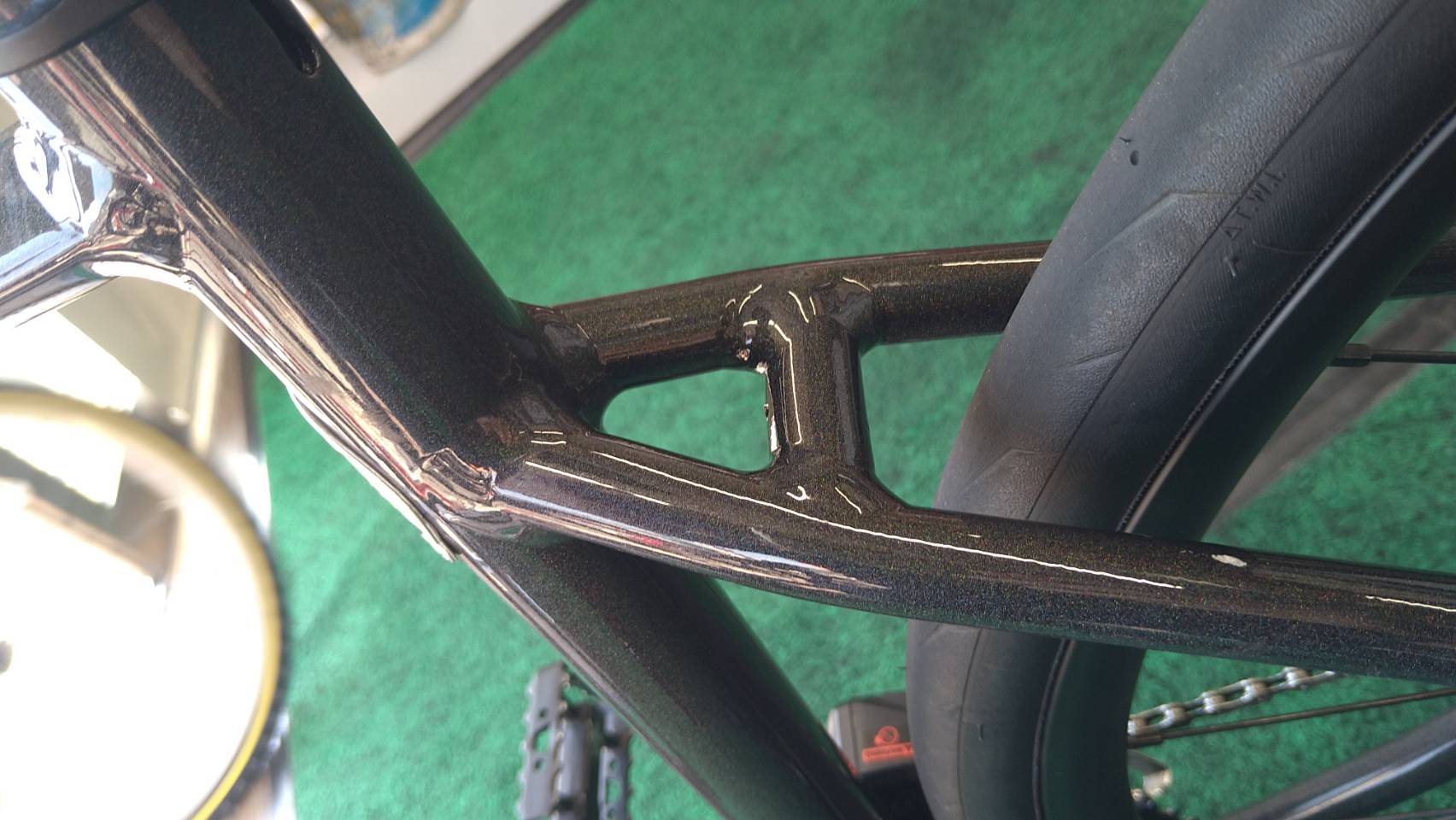 ギザロバッジはヘッドチューブじゃなくシートチューブに。